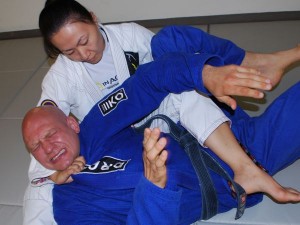 This picture comes from grapplearts, and obviously shows an old man being choked by a girl. Depending on your old-mannedness, this could or could not be a good thing. Judging by this gentleman’s face, it’s bad. That’s how you know a choke is locked in and good; you make a face like a baby that just got served strained peas for breakfast. Usually it’s followed by some kind of deep, guttural “aruglglghgh” sound as well.