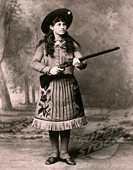 Take a second and reflect (pun intended) on that whole bowie knife thing – She used the knife as a mirror to basically shoot golf balls out of the air. Keep in mind, she did that day in and day out as part of her perfomances on the Buffalo Bill’s Wild West Show. And in case you haven’t done the poopie in your pants in amazement yet, she once shot 943 out of 1000 said balls that were thrown into the air in rapid succession. That’s saying something considering most people are too lazy to sit and just watch someone throw balls in the air for a couple of hours…you know, unless you’re a slut who really likes balls.