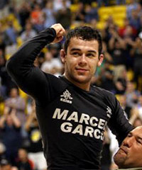 This little homerun hitter is Marcelo Garcia. His open guard and control are absolutely insane. He is roughly 5’8″ and competes around 170 lbs.