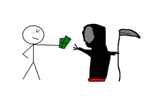 EH! WRONG! You bargain with death of course. On your deathbed this is acceptable. Putting God on speaker-phone in your late stages of dementia and telling him you’ll change your ways and give your life savings to charity will be frowned upon by no man…after all, you’re trying to work a deal for an extra tank of life to get you a little further down the road – that’s respectable.